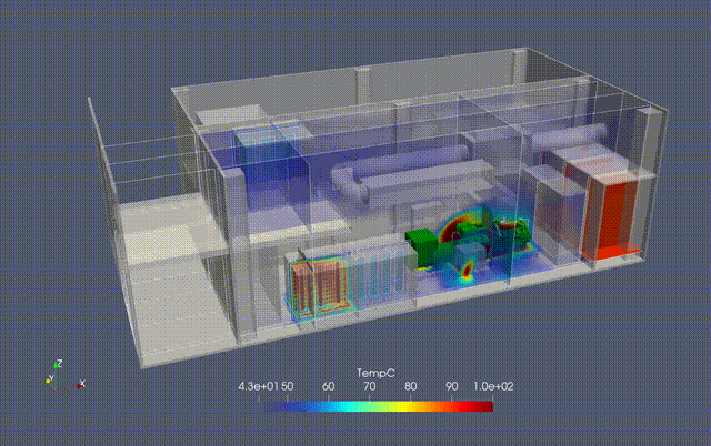 Nos modèles sont réalisés à l'aide du code_saturne, développé par la R&D d'EDF. Cette approche nous permet de scripter nos modèles, nos géométries et d'être réactif en cas de modification du design.